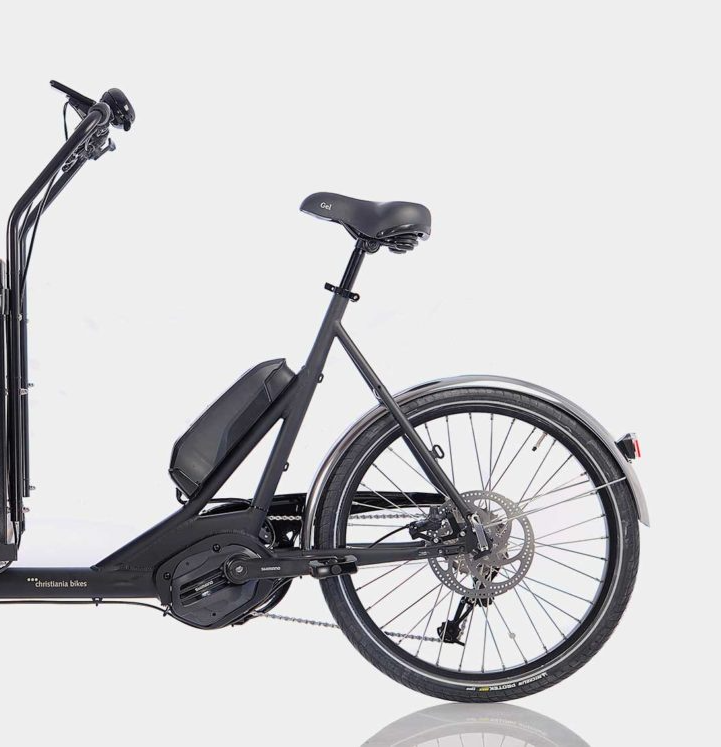 Christiania Bikes verbaut Pedelec-Motoren bzw. Akku-Systeme von Promovec. Mit einem Zusatzakku können Sie immer die Reichweite verdoppeln.